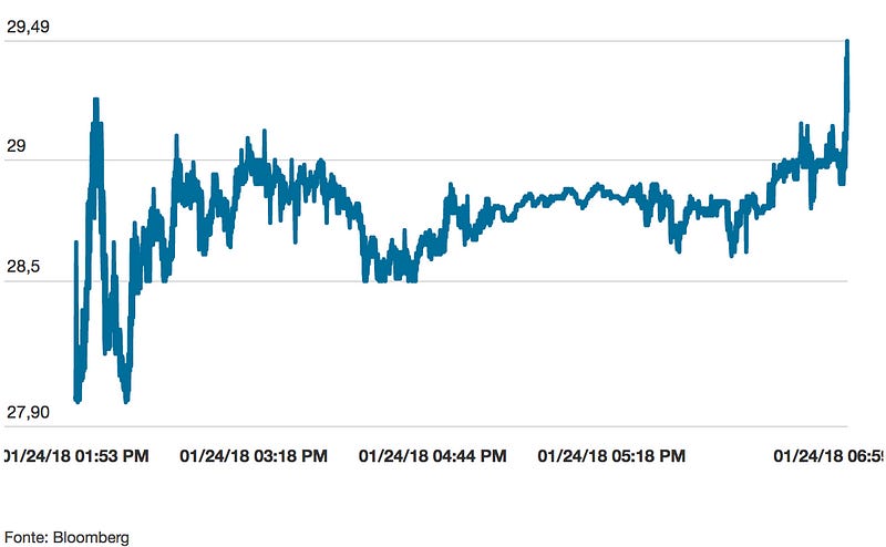 Os rumores eram de que os bancos aumentariam o topo da faixa das ações em cerca de 20%. Na prática, esse aumento foi de ~5% (20,50 *1,05 = 21,525) na abertura e de 35,8% no final do dia, como vimos anteriormente.