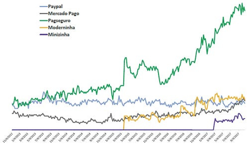 TPV (Total Payments Volume) de R$ 24.8 bilhões nos primeiros 9 meses de 2017, com um crescimento médio de 125,1%, considerando o mesmo período de 2015;
