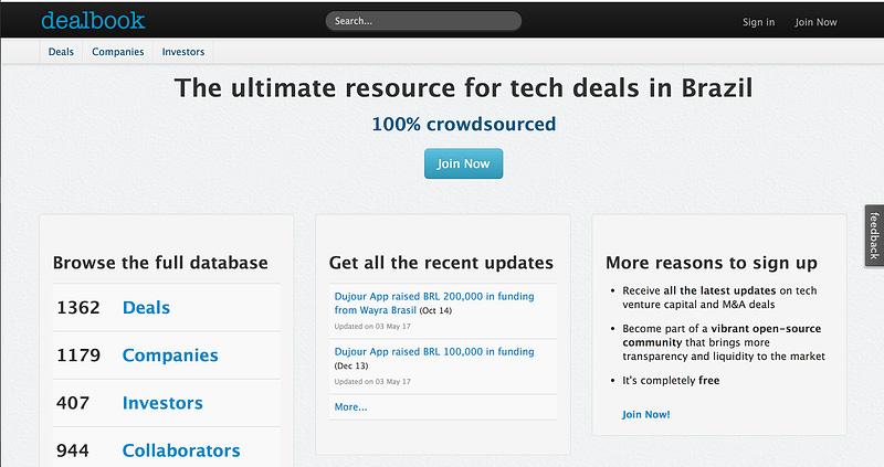 Hoje, quase 10 anos depois, o Dealbook pode ser considerado a base de dados mais confiável (por ser moderada) dos investimentos, fusões e aquisições no Brasil, desde os anos 2000. Ele foi usado, por exemplo, para a criação do Brazil Startup Report, que hoje já conta com quase 100 mil visualizações.