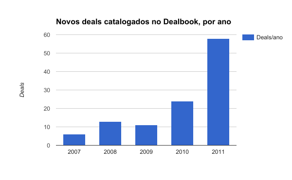 Gráfico: Novos Deals catalogados no Dealbook, por ano