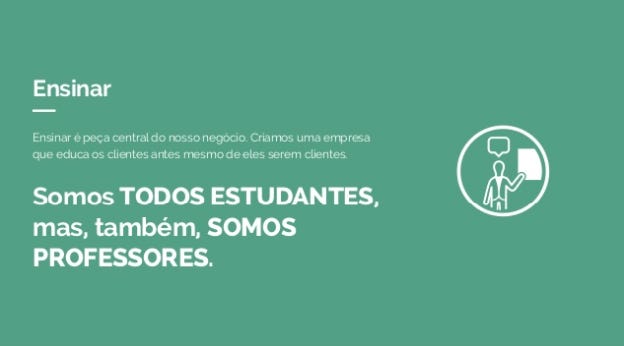 Queremos ensinar não só nossos clientes, mas também os clientes deles, nossos Rockers e também nossos parceiros.