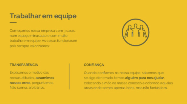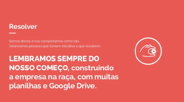 Trabalhamos duro para construir uma empresa legal, alinhada com as coisas que acreditamos, mas ainda não havia um mecanismo consistente de transmissão da nossa cultura dentro da empresa para guiar os new hires e eles ficavam meio perdidos.