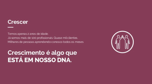 Vivemos isso querendo sempre mais. Queremos nos desenvolver, crescer. E procuramos por pessoas que compartilham o mesmo objetivo. Trabalhamos todos juntos para crescer nessas 3 dimensões.