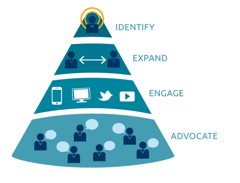 Com a sua "conta alvo" definida, é hora de começar a "alargar esse funil", e a próxima fase é EXPANDIR. Descobrir dentro da sua conta quem são as pessoas-chave para o seu negócio: Tomadores de decisão, usuários, influenciadores e etc.