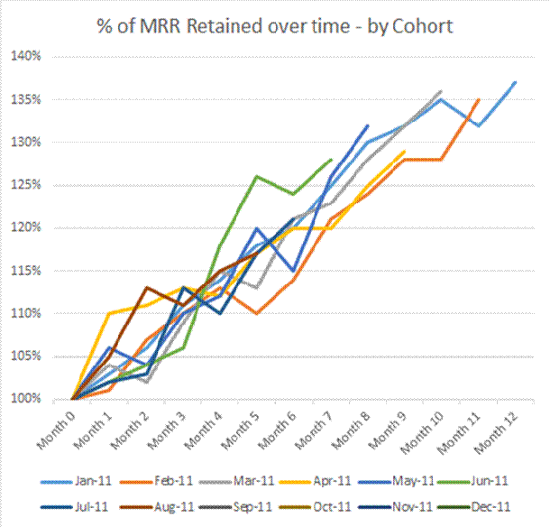Na NetSuite, tivemos grande sucesso deslocando a linha nos últimos anos, tanto diminuindo drasticamente a rotatividade e aumentando a dimensão média das operações e volume, aumentando assim o MRR acrescentado. O resultado foi tanto para mover continuamente o limite para cima quanto para jogar a curva de crescimento mais a esquerda, criando espaço para a expansão cada vez mais rápida.